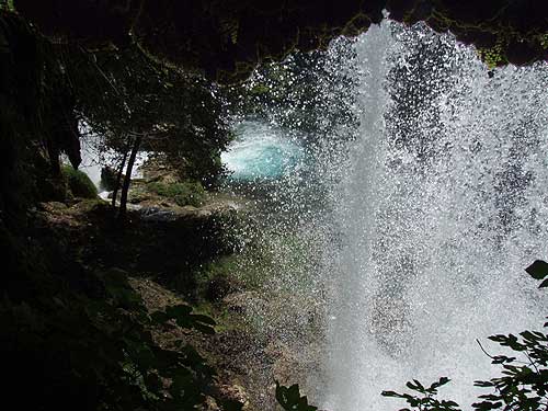 unter und hinter die hinabstürzenden Wassermassen gelangt. Der Wasserfall