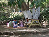 Tische und Bänke zum Rasten für die Familien bereit. Doch oft ziehen