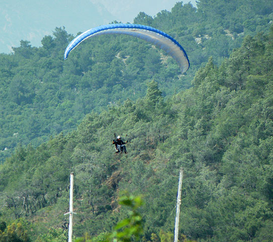 Der Gleitschirmflieger schien fast zwischen den Schiffsmasten zu