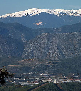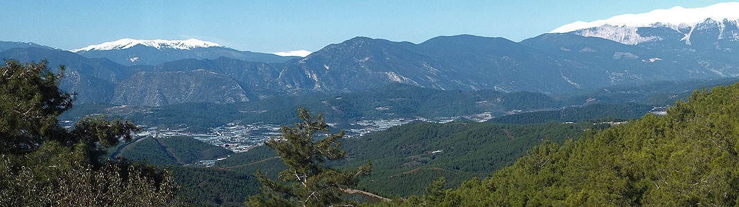 Kumluca mit Blick auf die schneebedeckten Gipfel des westlichen