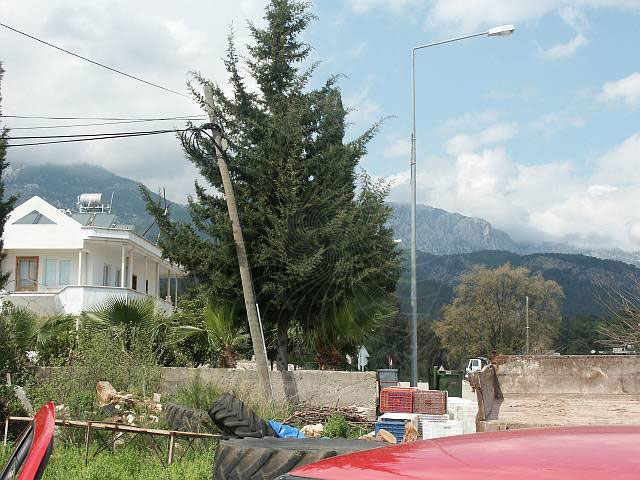 Tekirova-Mastbruch 17.3.2006, der Mast auf der Straße wurde entfernt, die Kabel irgendwie verbunden. An dem Mast hing dann alles, mal abwarten, wie lange es hält! |