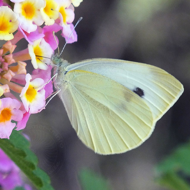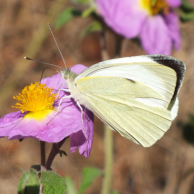 Pieris-brassicae, auf einer Zistrosenblüte.