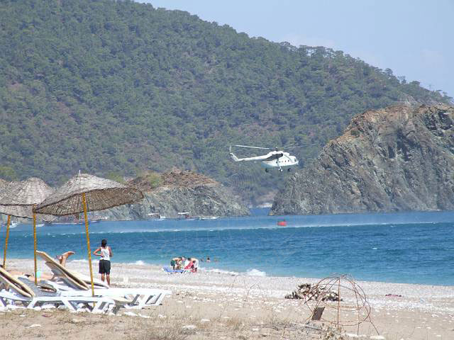 Löschhubschrauber am Strand von Cirali