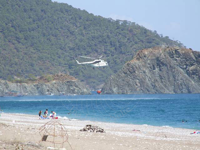 Löschhubschrauber am Strand von Cirali