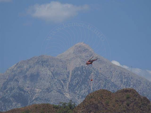 Löschhubschrauber im Einsatz - im Hintergrund der Tahtali