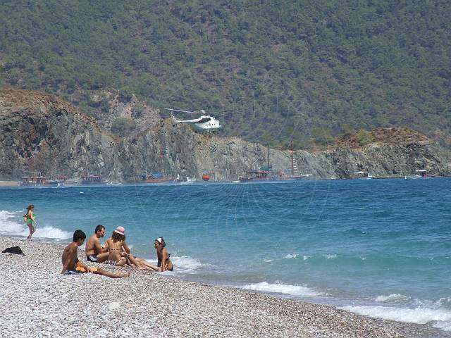 Löschhubschrauber am Strand von Cirali