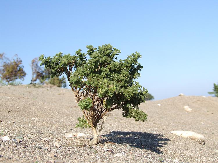 Dieser "Baum" muss noch viel größer werden, bis man ihn wirklich sieht, noch ist er ein kleiner Busch am Kindil Strand am Nordende von Kemer. Hier gibt es die letzten ursprünglichen Sanddünen.