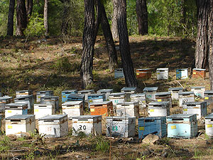 heißen) und die Imker bringen die Bienenkästen in Stellung.