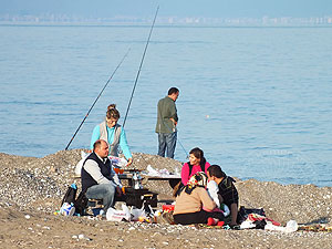 genießen das Strandleben, selbst im Dezember kann man zumindest