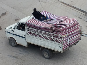 Ladefähigkeit der Fahrzeuge, egal ob 5 Leute auf dem Moped oder