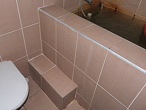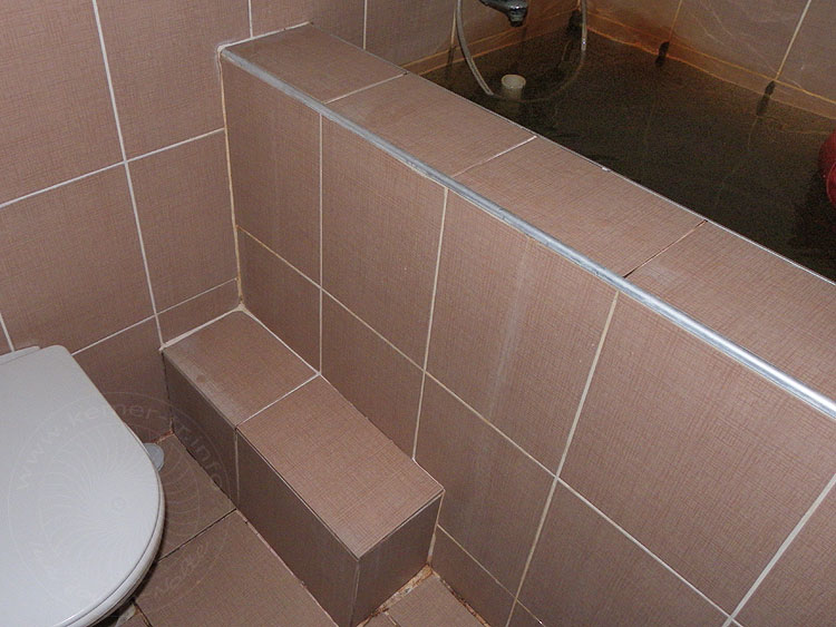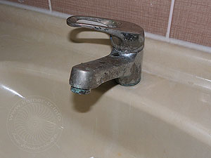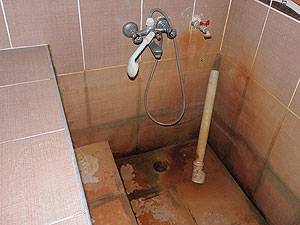 cm hohe Wand. Die Ablagerungen in der Wanne und am Wasserhahn