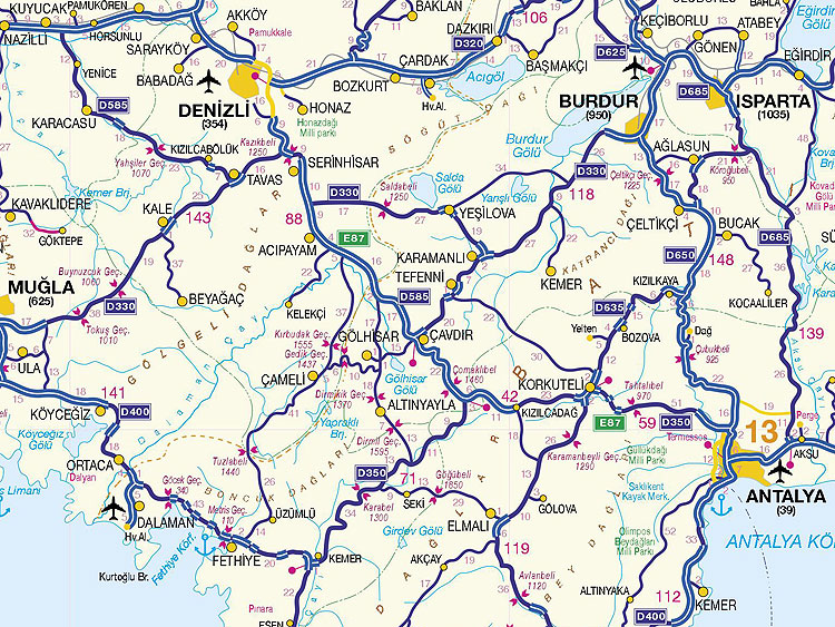 los. Die Fahrt ging über Antalya, Korkuteli, Cavdir nach Denizli