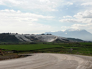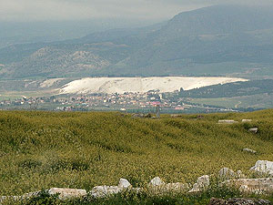 rechts zeigt die Terrassen vom etwa 7 km entfernten Laodikeia