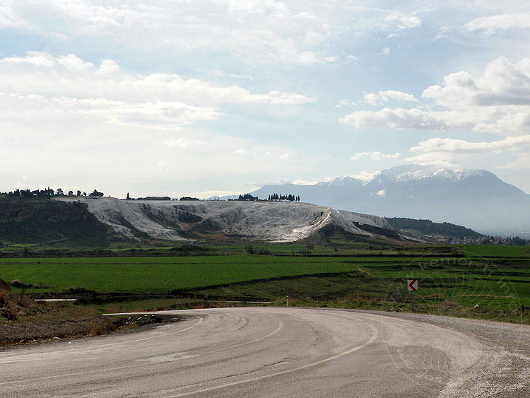 vom Ort Pamukkale aus eine Zufahrtstraße mitten durch die