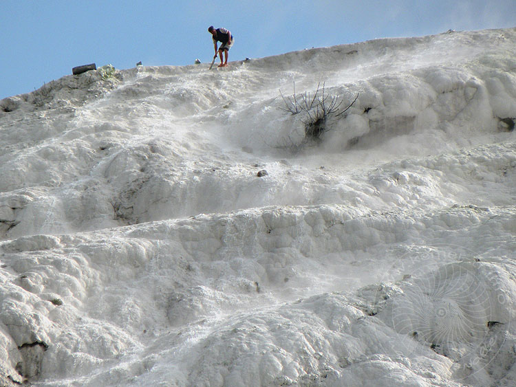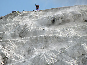 Pamukkale heute in weiten Teilen wieder schneeweiß. Durch die