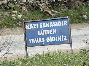 etwas ältere Schild weist auf ein Ausgrabungsgelände hin und