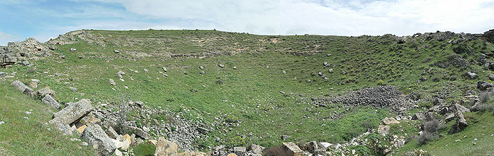 des Bühnenhauses liegt ein wüster Haufen von Steinquadern - viel