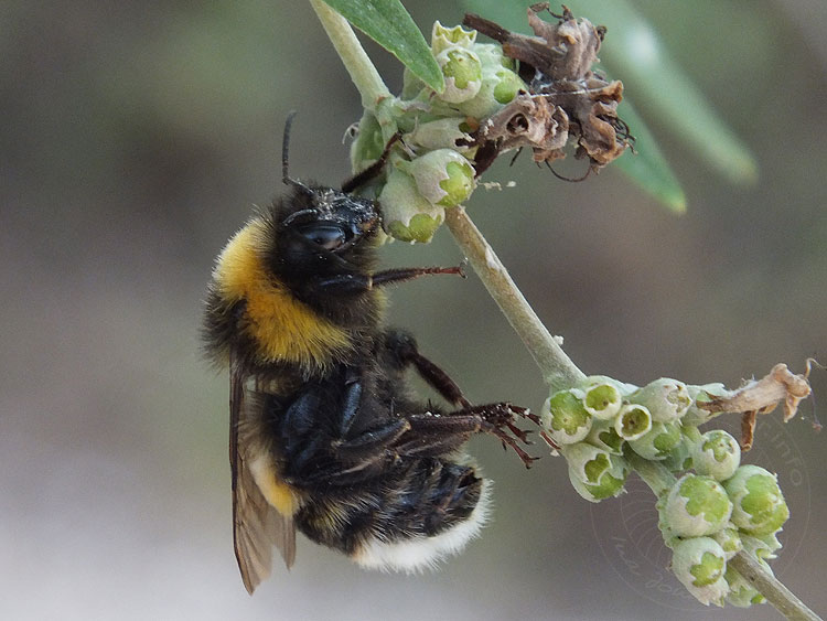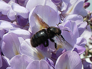 friedliche Artgenossen sind Holzbienen, die sich am Nektar