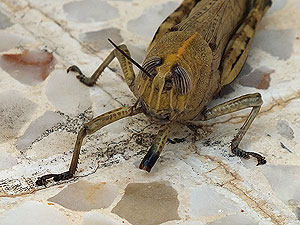 Balkon sonnt sich eine Schönschrecke, sie hat extrem lange