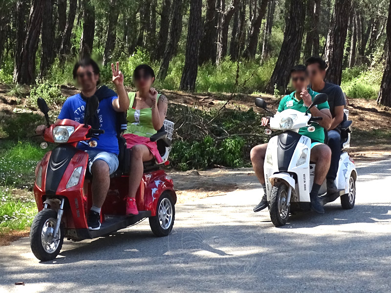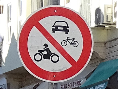 Schilderwald ![]() Die Hafenstraße in Kemer ist eine Fußgängerzone und gesperrt für Autos, Motorräder und Radfahrer ![]() Aber was ist eigentlich alles ein Fahrrad? ![]() Dazu zählen auch elektrisch angetriebene Fahrzeuge, die wie ein Tretroller mit Notsitz ![]() oder fast wie ein Krankenfahrstuhl aussehen! ![]() Ein paar kleine Umbauten, ein leicht getunter E-Motor und schon können zwei (oder auch drei...) Erwachsene mit den Dingern die Straßen unsicher machen, führerscheinfrei und ohne jede Versicherung. Werden gerne von Touristen angemietet, denen im Urlaub kein Risiko zu groß ist. Fenster schließen |