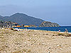 rechts am Strand entlang bis zum Eingang von Olympos. Hier steht