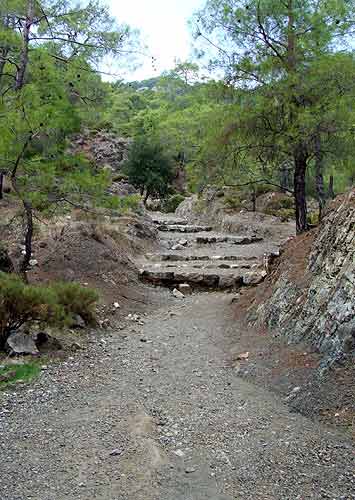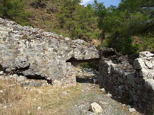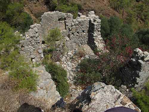den Abzweig Olympos 11 km Straße bis zu den Ruinen. Man kann mit dem Dolmus
