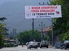 Lokal-Zeitung und auf großen Spruchbändern, die auch bei uns im