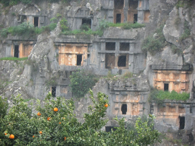 einen Blick auf die Felsengräber der Nordnekropole von Myra am