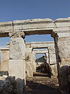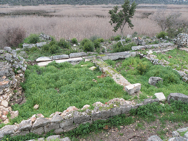 ausgegrabene Synagoge ist leicht zu sehen. Die Steinplatte mit