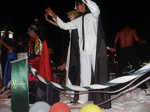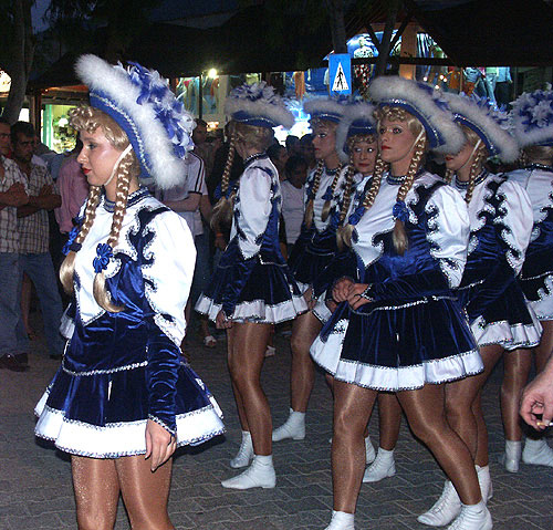 Schärpen, die den jeweiligen Titel nannten: Außer Miss-Romania, Miss-Gana, Miss-Volga usw. glaubten wir auch Miss-Raten, Miss-Gelungen, Miss-Gelaunt und weitere Miss-Gestalten erkannt zu haben. (Au weija,