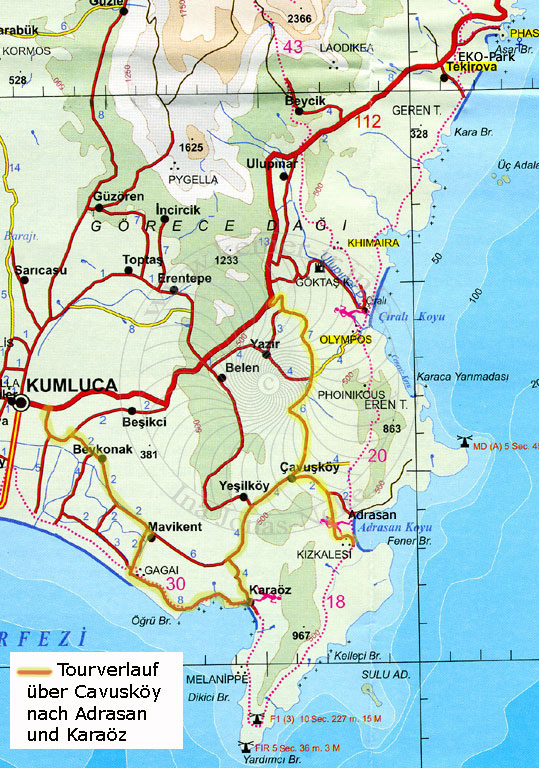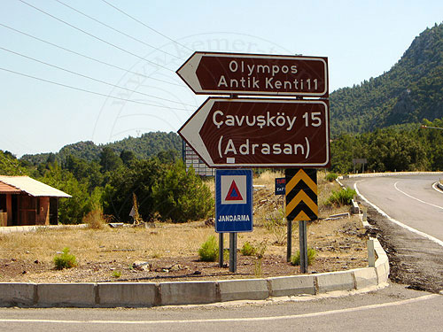 Abfahrt nach Olimpos und Cavusköy (Adrasan) ab. Die Straße