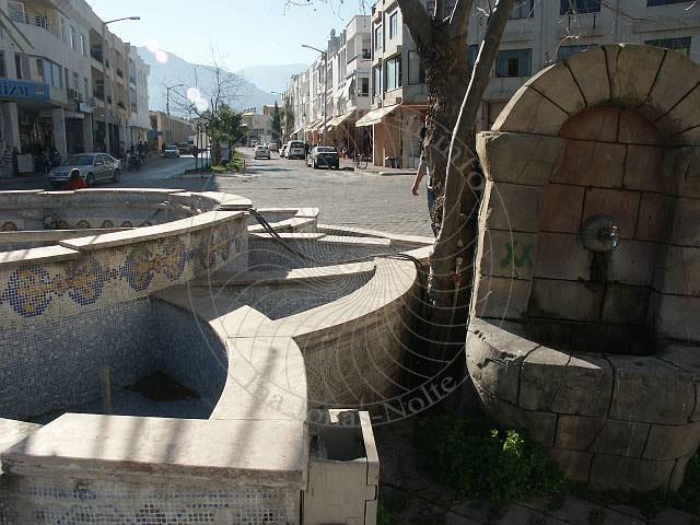 Straße zum Kreisverkehr ausgebaut und der alte Brunnen errichtet