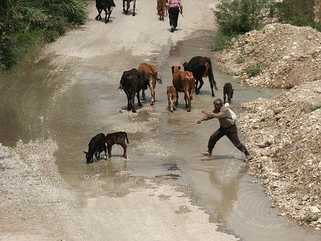 herlaufen, der Hirte mit seinen Kühen oder die Holzsammlerinnen