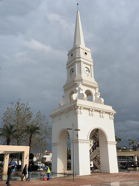 beginnt oft am weißen Uhrenturm, der einem Kirchturm sehr