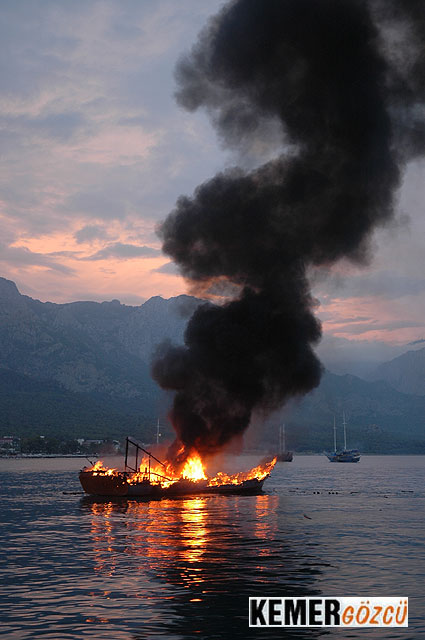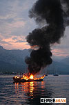 ausbrannte und nach fast vier Stunden schließlich sank.