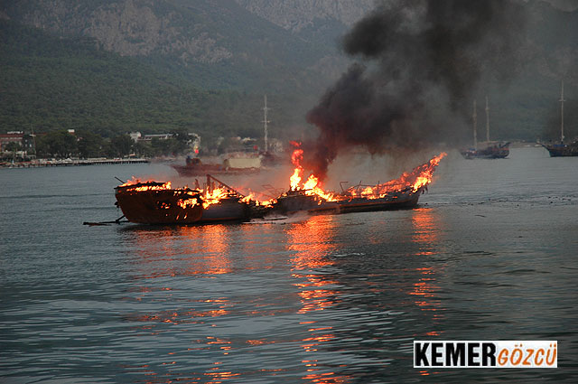 liegen, griffen die Flammen auch noch auf drei weitere Schiffe (Teo