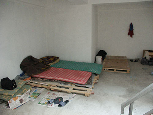 haben einige Arbeiter einen Schlafplatz gefunden.