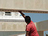 Arbeiter versuchte mit einem sehr langstieligen Schieber den