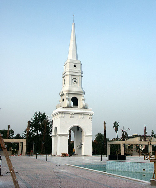 Republik) mit diversen Wasserspielen, einem 38 m hohen Uhrenturm