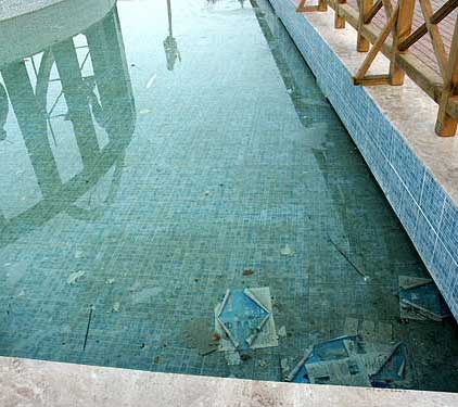 die seitlichen Wasserbecken (ca. 10 cm tief) werden gerade