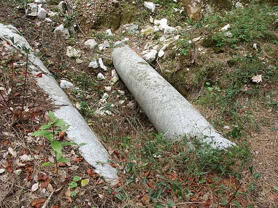 zwei schlanke Säulen und auch einen weiteren behauenen Stein