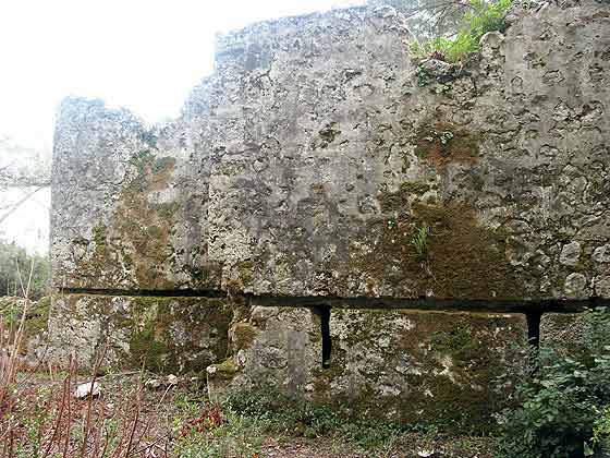 einer Mauer mitten im Wald an einem leicht abfallenden Hang
