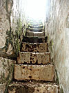 einer Türöffnung in der Außenmauer des turmartigen Gebäudes. Der