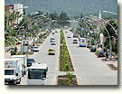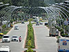 eine breite vierspurige Straßentrasse geschlagen. Entlang dieser