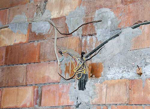 Wand verkrallen sollen, sich in die Stromkabel bohren und die