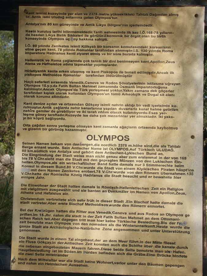 Die antike Stadt Olympos (auch Olimpos geschrieben) liegt etwa