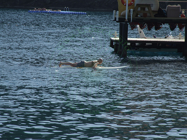 Morgen strahlendblauer Himmel, 23 Grad, Joe geht baden, Surfer