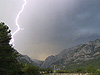 ein heftiges Gewitter mit Blitz, Donner, Sturm und starkem