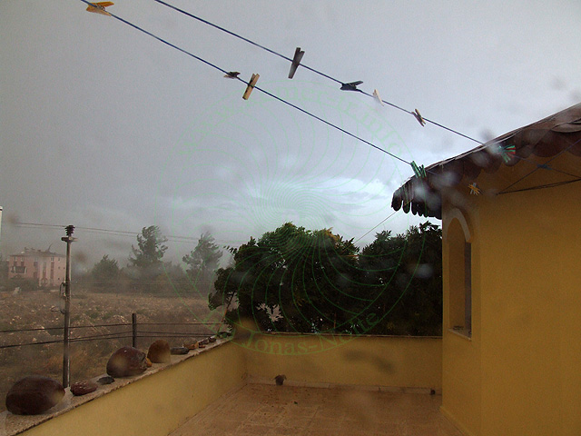 Regen, der später fast waagerecht durch die Luft zischt. Nach