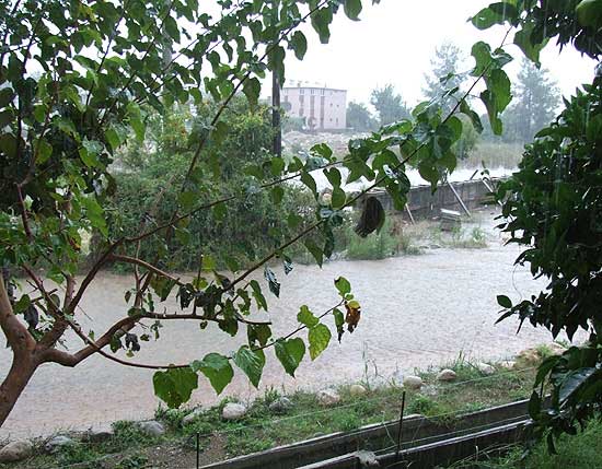wolkenbruchartige Regenfälle gab. Die Straße vor unserem Haus
